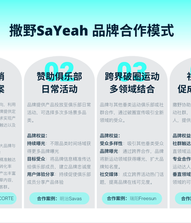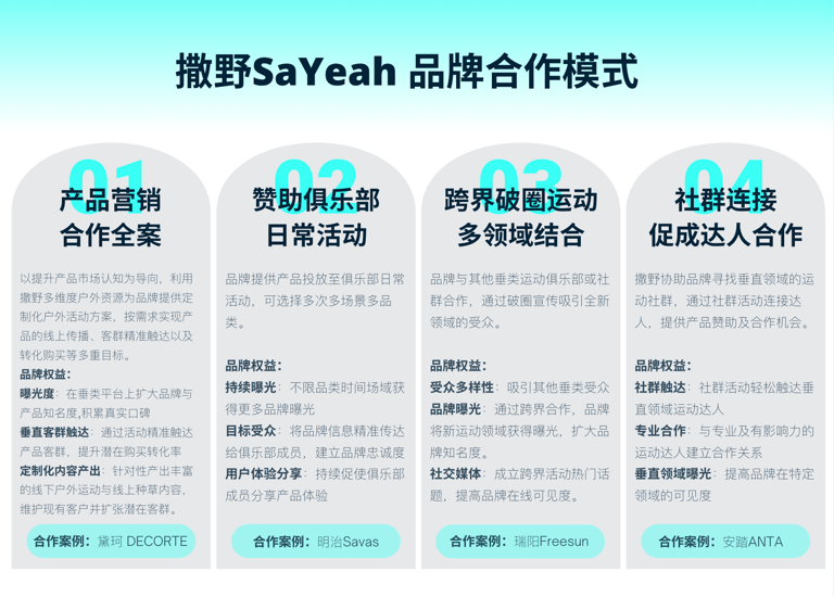 撒野平台已与多家国际品牌达成合作,建立了丰富的品牌库。通过与撒野签约的俱乐部和赛事IP资源,品牌能够快速测试市场、精准触达目标群体,并通过撒野独特的私域销售渠道提升产品销售转化率,减少沟通成本,优化营销效果。
