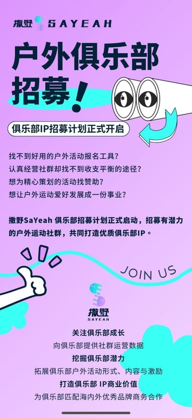 撒野户外平台是中国领先的体育经纪公司,连接国际品牌与成熟的户外俱乐部,提供赞助、活动及产品分销服务,覆盖整个大中华地区。